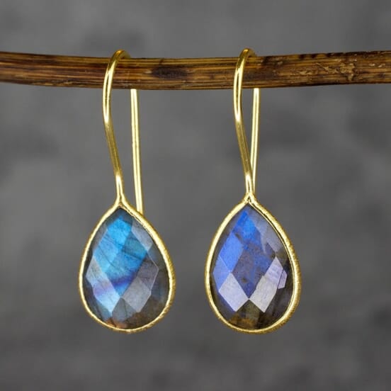 Labradorit Edelstein-Ohrringe – 925-Sterlingsilber, vergoldet